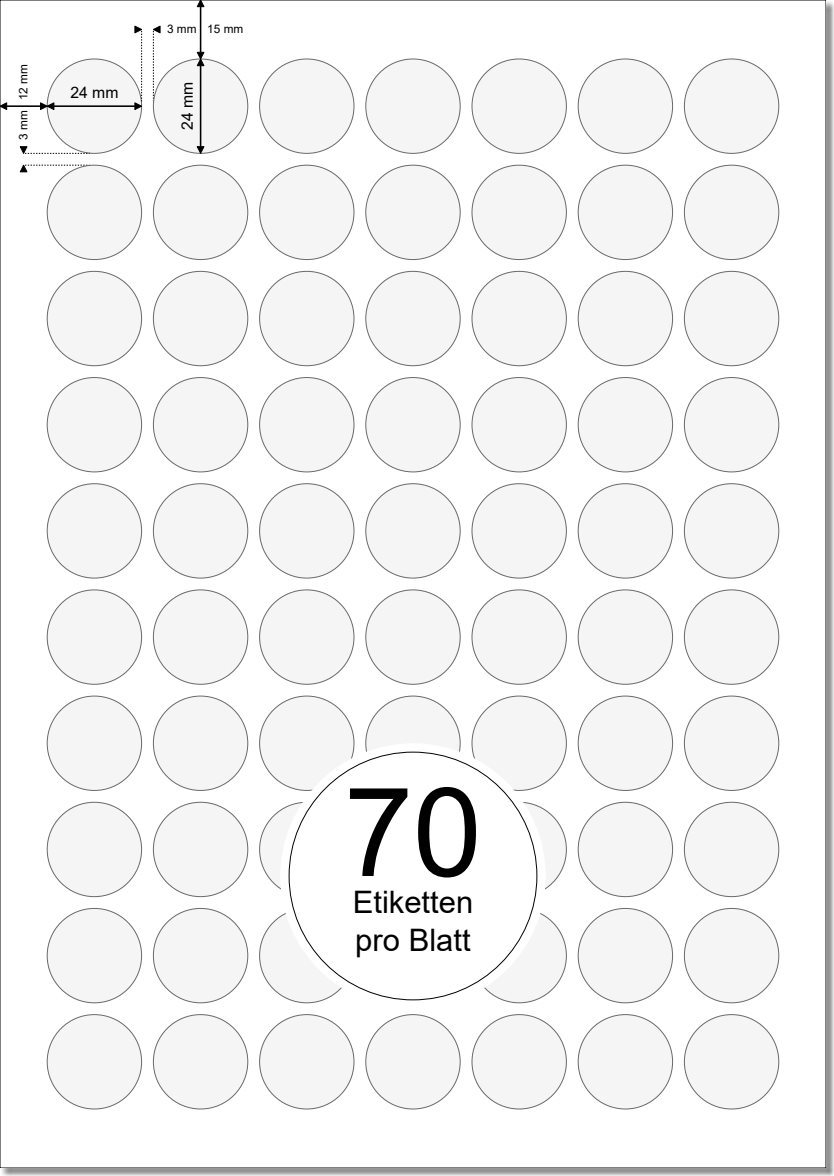 PRINTATION Papier-Etiketten Durchmesser 24mm 100xA4 à 70 Eti.