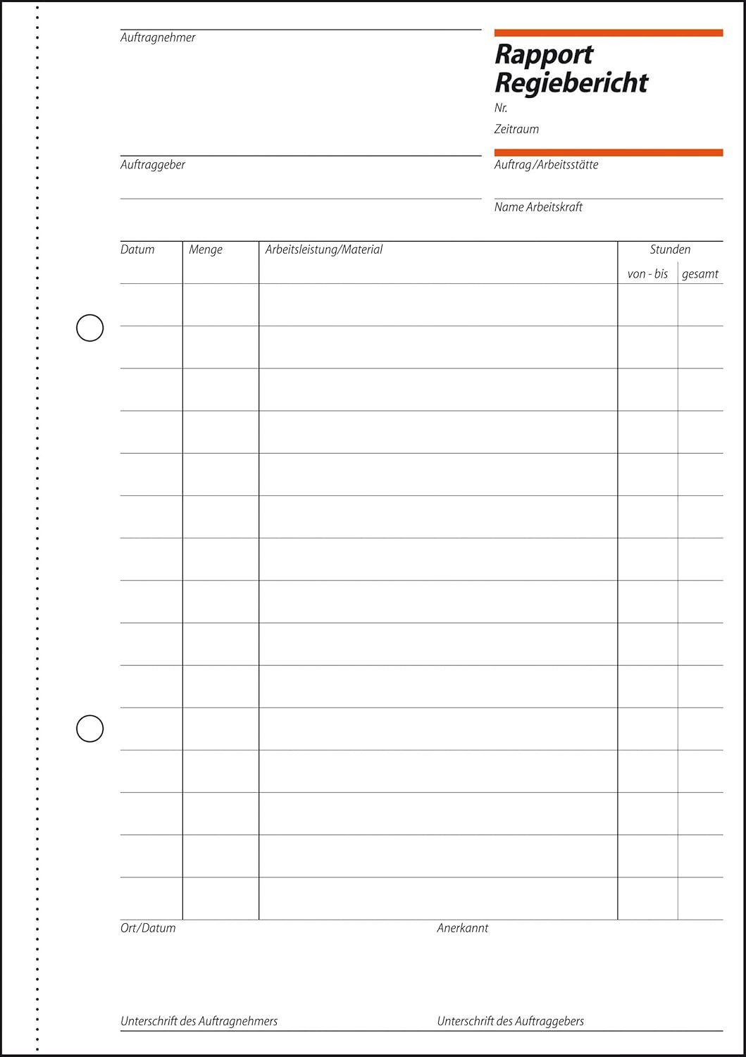 - praxisbewährtes Rapport-Formular zur Erfassung des Regieberichtes mit Aufschlüsselung in