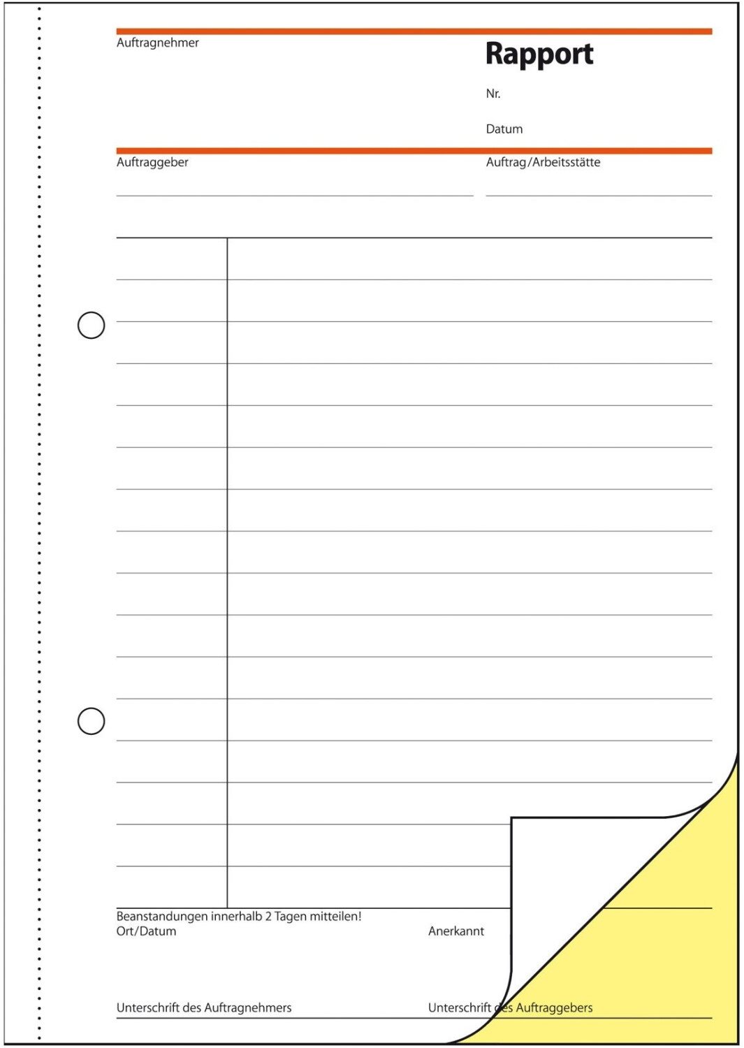 - selbstdurchschreibendes, praxisbewährtes Rapport-Formular im Format A5