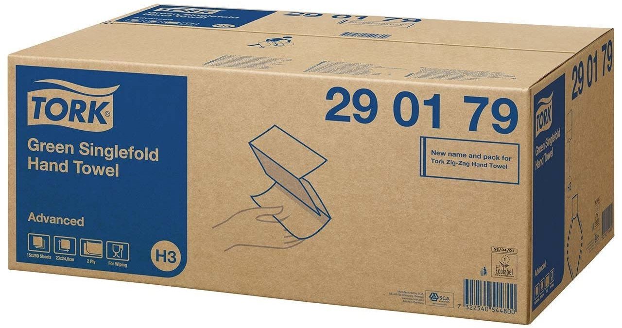 - neue Tork EasyHandling Eigenschaften für ein einfaches Öffnen, Zusammenfalten und Abtransportieren der Umverpackung