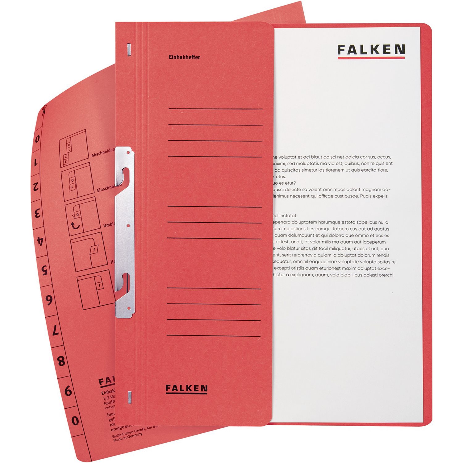 Eigenschaften: "Einhakhefter A4 1/2 Deckel Falken kaufm. Heftg. rot"