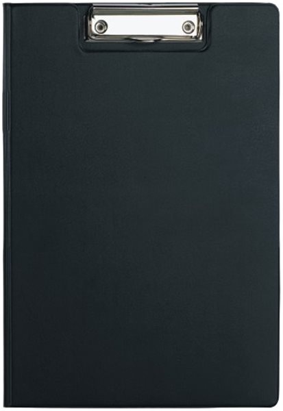Eigenschaften: "Klemmbrettmappe A4 Alco schwarz mit Deckel kunststoffüberzogen, abwaschbar"